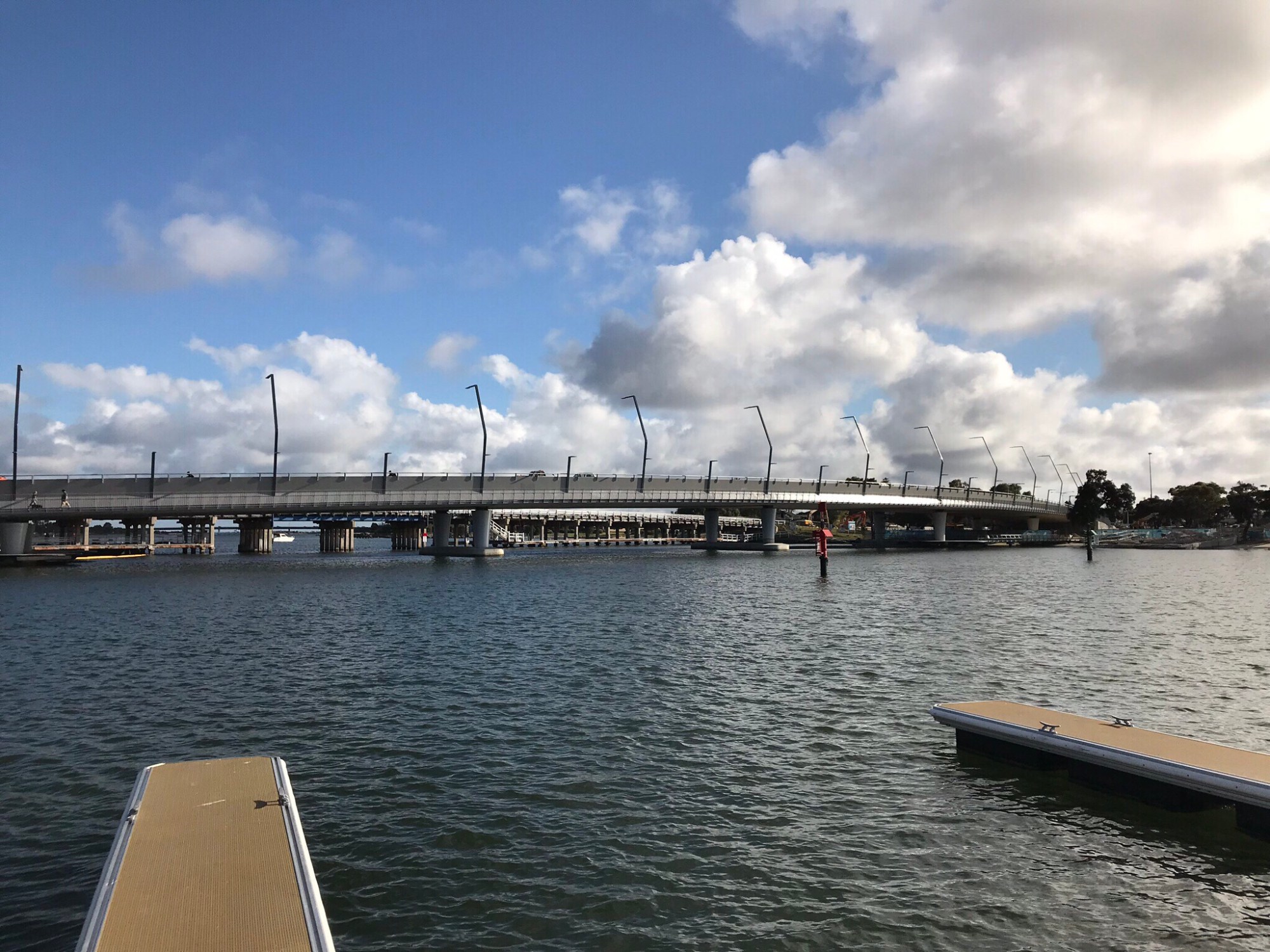 Cover Image: New Mandurah Bridge, now in use but not quite complete, in the background the 70 year old Mandurah Bridge is being dismantled.
