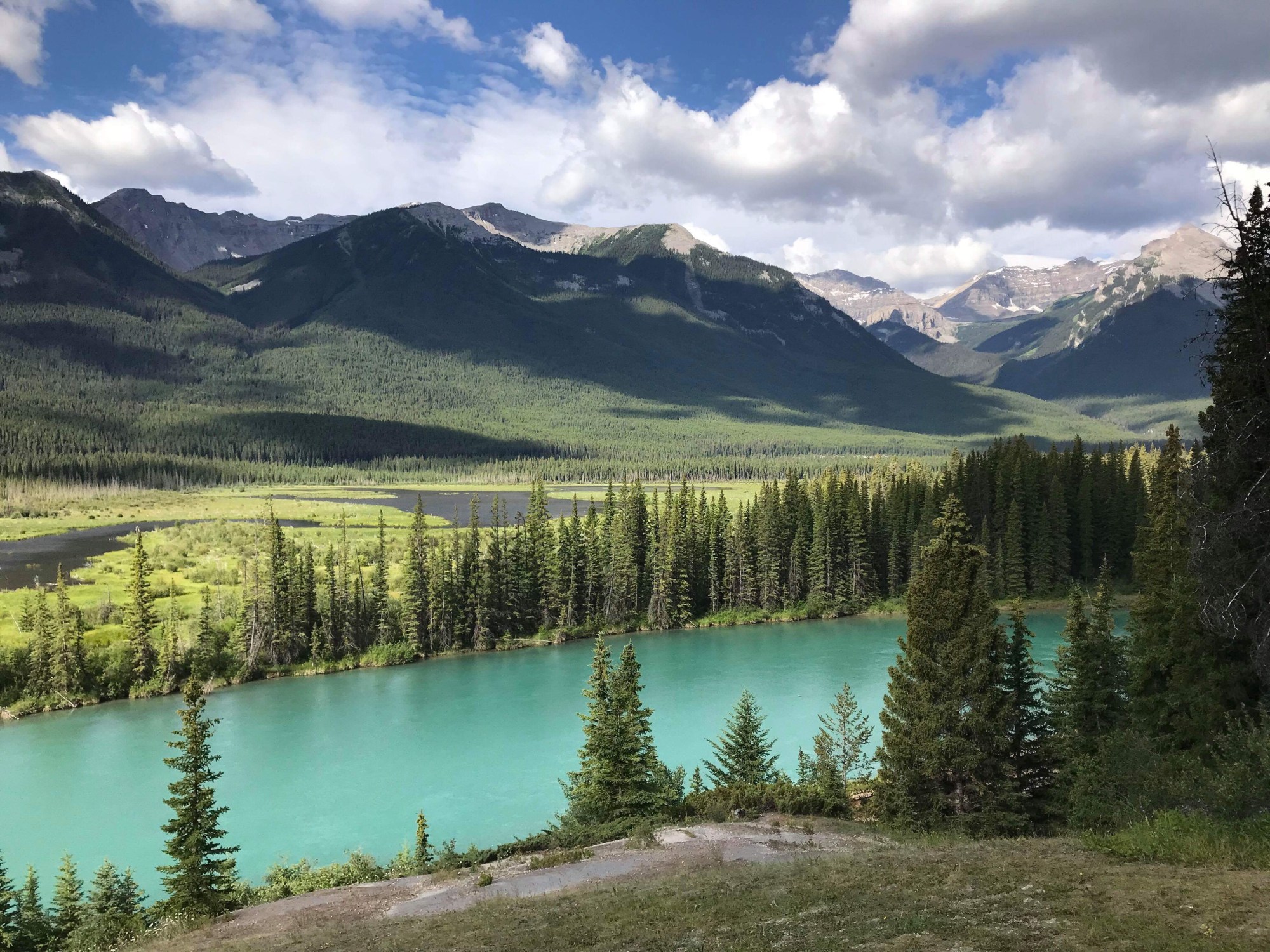 Around lunch time, we pulled into the super busy, Johnston Canyon, for a looksie. Art and John had seen it before, I didn’t want to use up my legs walking, so Will went for a walk to check it all out. The rest of us, corralled the wagons, to make a coffee and some lunch. There were a billion rangers around, and you are not supposed to cook or have food, there are bears you know. Luckily there were so many people, we weren’t noticed, and we spent about 2 hrs, relaxing and eating lunch. Wills report of the canyon was, “Just too many people, double prams, dogs, kids, ugh”.