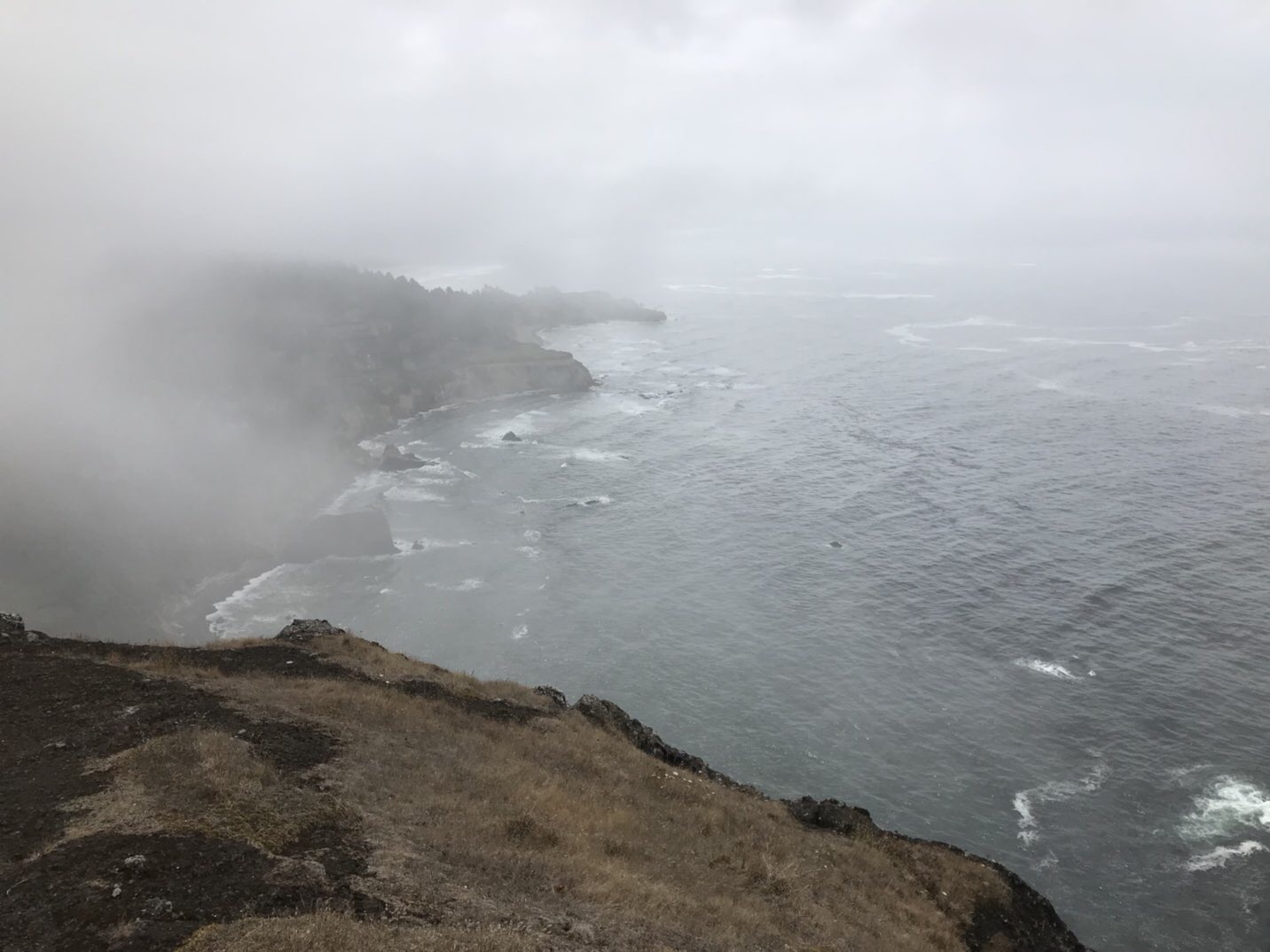 No more mistakes with big hills, as we employed Davo GPS, who guided us to Otter Cresent Loop. This was an absolute highlight. A steady low gradient climb, on the old 101 Highway, that winds it’s way along the coast edge. It was still misty and foggy, but spectacular, with the added bonus of very few cars, a one way road, and a dedicated bike lane for a lot of it. This is Cape Foulweather. Luckily today was not one of the typical days they get on this Cape. It was great.