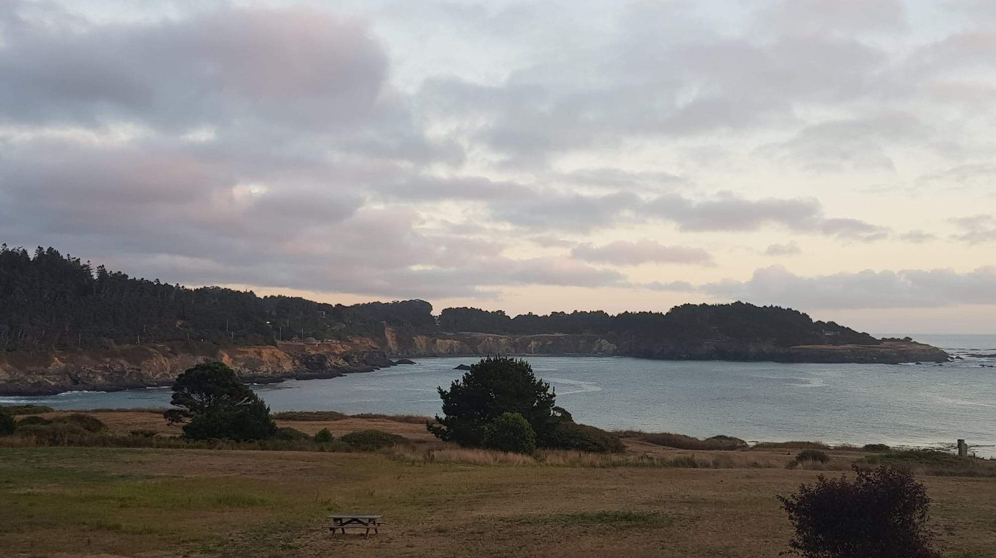 Uuuuuuuup…….Down! Over and over again. Finally it was starting to get better, but the three others were having to stop and wait for me so much, it was really starting to upset me. Fatigued and frustrated, I was getting angry at Will for doing so well, and not hanging back with me. Completely and utterly unreasonable. Jeff and Lori were so kind, and insisted that they wanted to stop too, but they had plans to go into Fort Bragg and stay in a hotel and it was getting cold and late. Somehow, I don’t know how, we made it to the State Park, after a short grocery stop at a little service station/local store nearby. We said goodbye to the other two, and hope to see them in Southern California later in our journey. Rolling into the hiker biker camp, we spotted David’s (the German) tent, and were surprised. We totally thought he’d be further along. He is doing a good job of taking his time, so as not to arrive in San Francisco too early.
