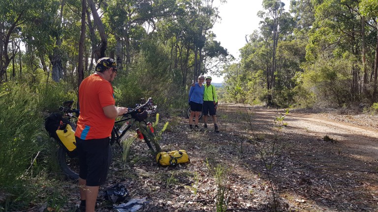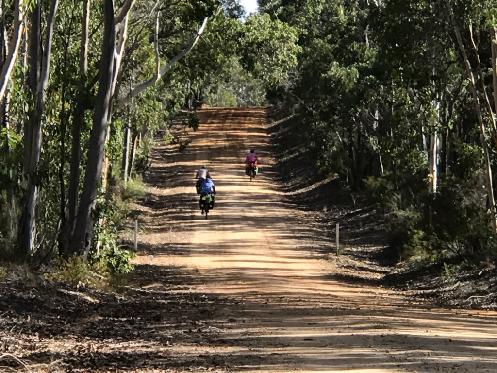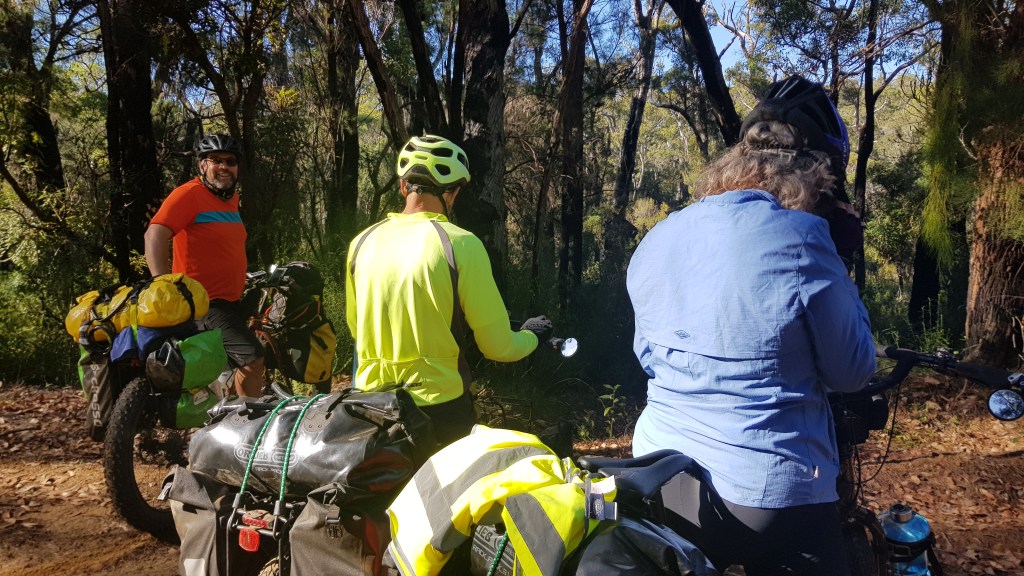 After a lovely shower, we were joined by Robyn and Paul, who have flown over from the east, and are joining us from Walpole to Manjimup. Friends of Allan and Julie’s, they have done plenty of cycle touring, and after quite a break from it, are keen to give this track a go. I hope they don’t mind swearing, and complaining, because I’m sure there’ll be plenty more of that for the next week.