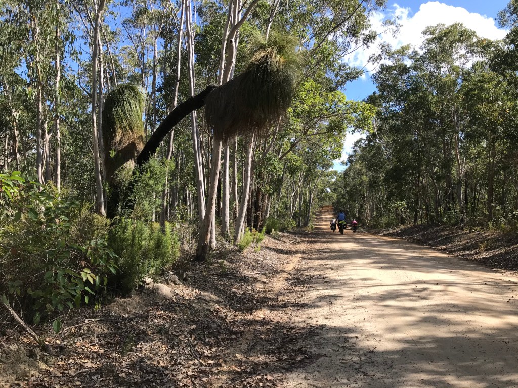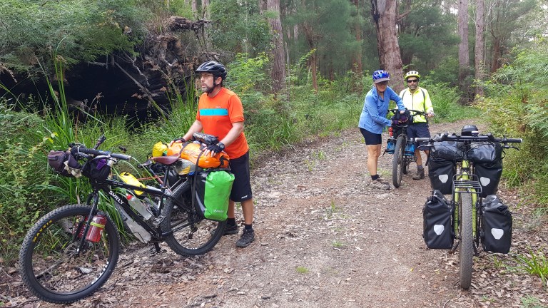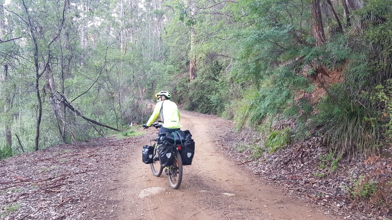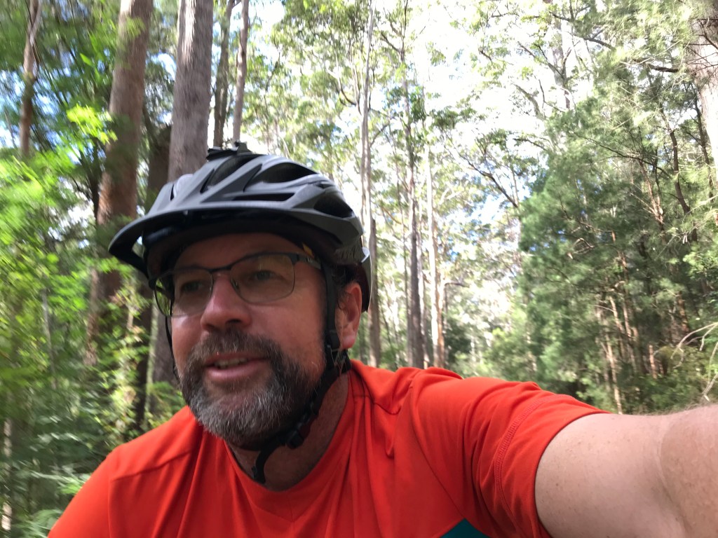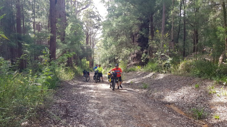 Hills of every variation, not enough downs, but stunning trees and scenery, when we could enjoy it. The first ten kays where not bad, but it just got harder and harder. More and more pushing up the steep hills for me, and I was slow. Except on the downhills. Max speed today, for me, was 60.7kms/hr, and it wasn’t intentional. I tried to hold the bike back on the steepest part of the descent, but it just took off. Pumping the brakes madly trying to slow down, while keeping it straight as possible, and hoping for an uphill just to slow down. Am I crazy? As it turns out, not as much as Will, who smashed out 67.4kms per hour on the big heavy Pig. No way Will! He did say he wasn’t feeling at ease with it. Won’t happen again, he says. We’ll see.