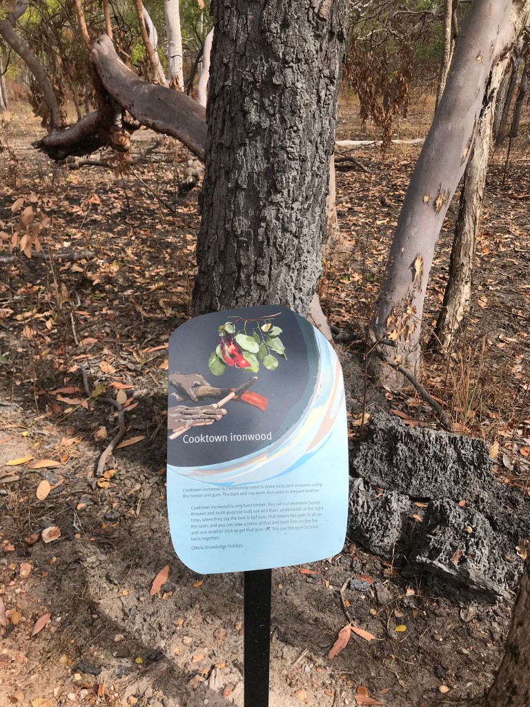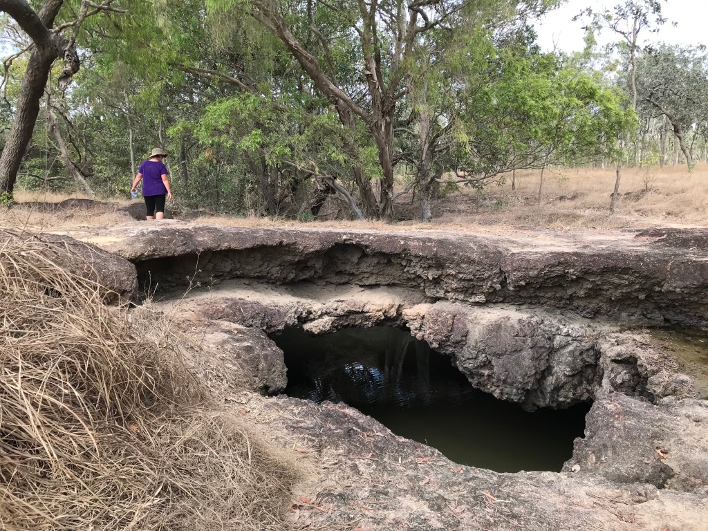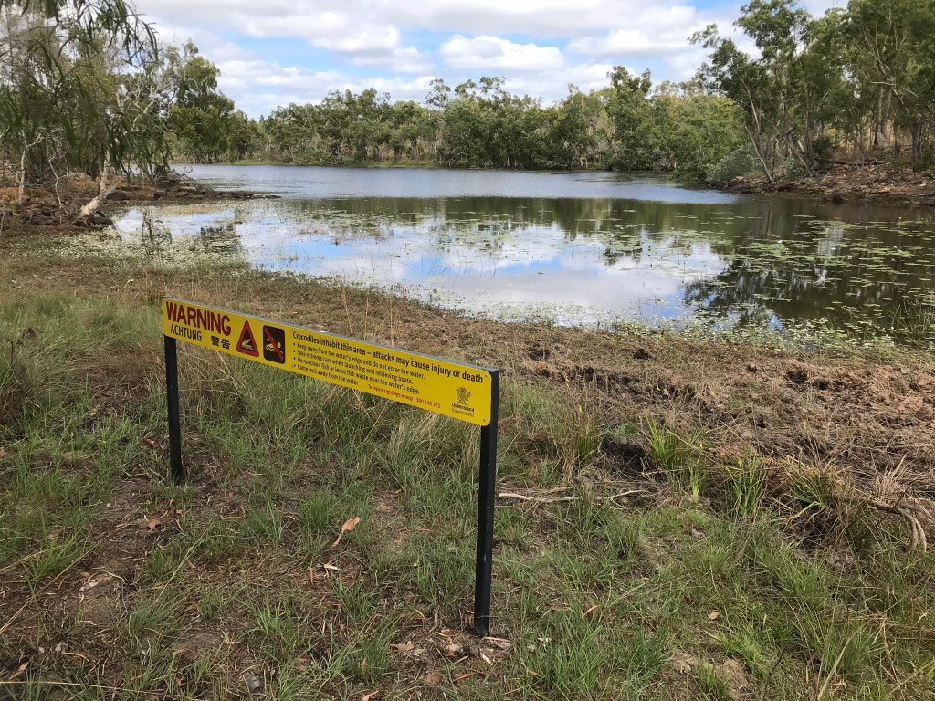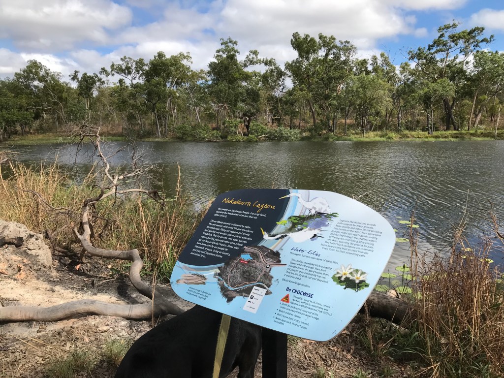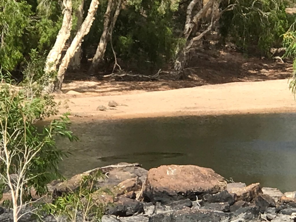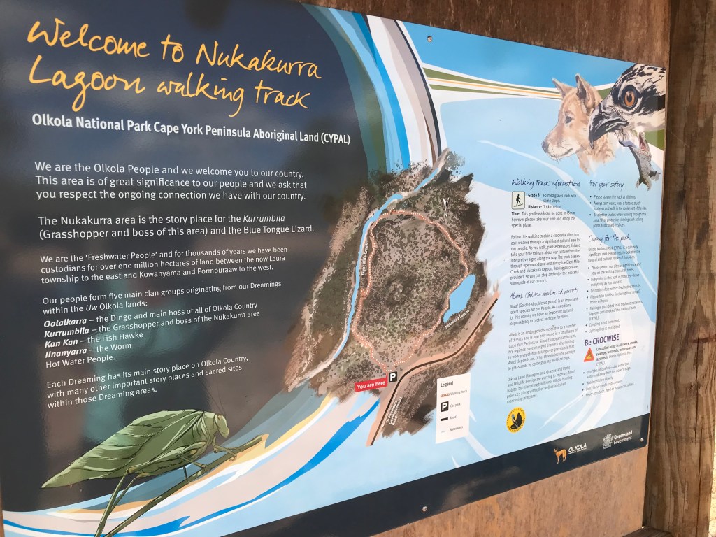 Our day started off normal, packed up and on the road by 9.40am, itās going to end up being a hot 33C. After 17kms we arrive at Olkola National Park (& Nukakurra Lagoon) it was one of our targeted camping spots. There is a level 3, 1.5km bush walk which the signage advises will take 45 minutes. Itās a good walk and there are info signs with pictures explaining the different bush tucker and medicine as you make your way around the loop. We also saw about 5 crocodiles, they were 1.5 to 2 metres long, very skitterish so hard to have a good look but I suspect they were all fresh water crocs.