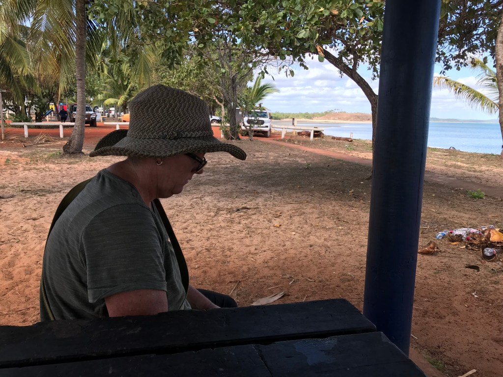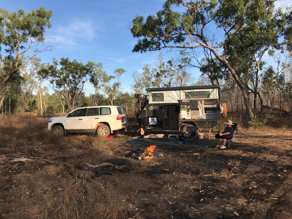 Our day started off in a rather relaxed fashion, Jenny is the first to “commission” the onboard toilet, then coffee and chats with our fellow campers. Jo and Anton got away fairly early, the little Reconn and two big vans were on the road at 9.30am. The young families were heading north, Jenny and I travelled 500 metres to the Archer River Roadhouse, we bought HCT Toasties, relieved ourselves in the facilities, disposed of our rubbish and pumped up the car tyres to normal running pressures.