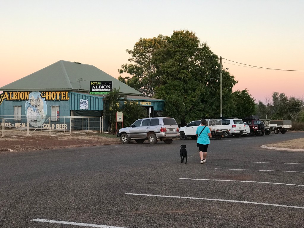 There are 3 Pubs, the Purple Pub, Central & Albion. Population is only 1000 people. The streets are extra wide, the caravan park we are staying in once housed the town pool and has an artisan bore.