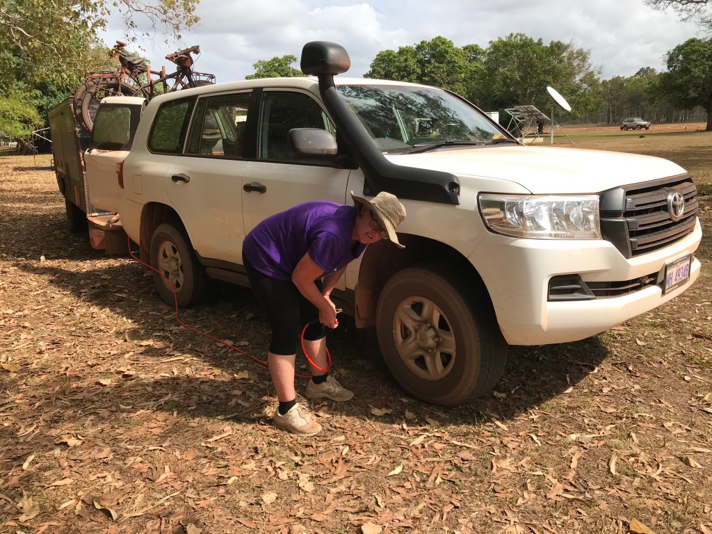 Jenny was shitty we were bogged and went off to chat to an older couple who had driven down from the nearby Roadhouse in an identical Landcruiser to ours, they did offer to assist but I passed and said once my tyres are down Iāll get out, which I did.