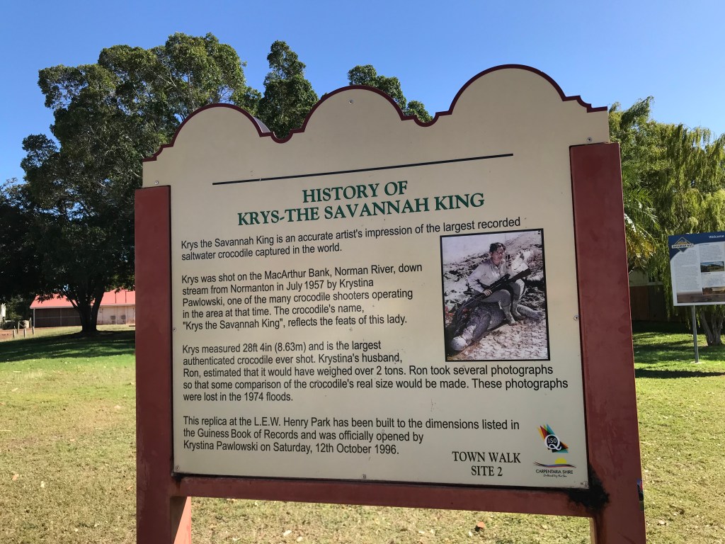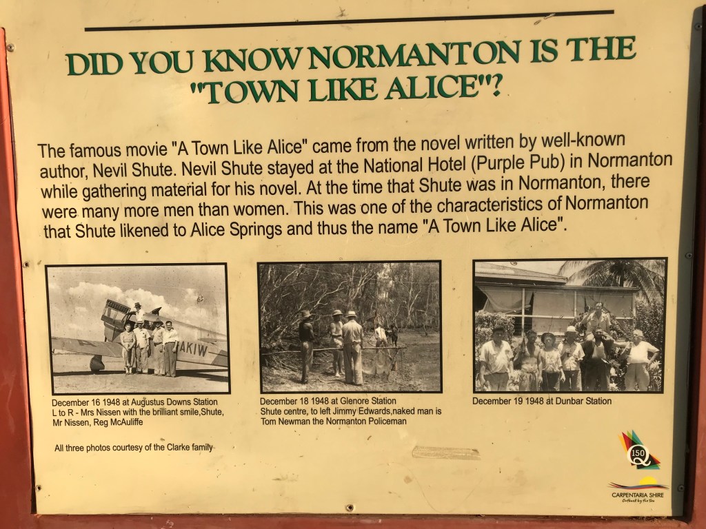 Did you know that Normanton is the town featured in the famous Australian book written by Nevil Chute, A Town Like Alice ? Also itās where the largest ever crocodile was shot, need to fact check but it was about 8.6 metres long. Itās an interesting town, established 153 years ago.Ā
