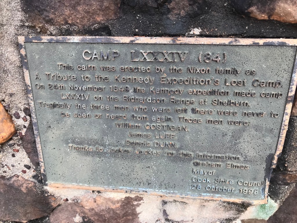The traffic seems to have eased, but there are still the occasional dangerous driver out there to be aware of. We stop for a break at a road side stop and memorial to Kennedy Expedition, lost camp 34, 24th of November, 1848. I notice weāve lost a bow shackle on the safety chain that you connect from the trailer to the car. Iām the person who connected it and am surprised itās worked loose and fallen off. First time thatās ever happened to me, not to worry I have a load rated spare D-Shackle in our recovery kit. Dogs in, Wife in, letās goā¦