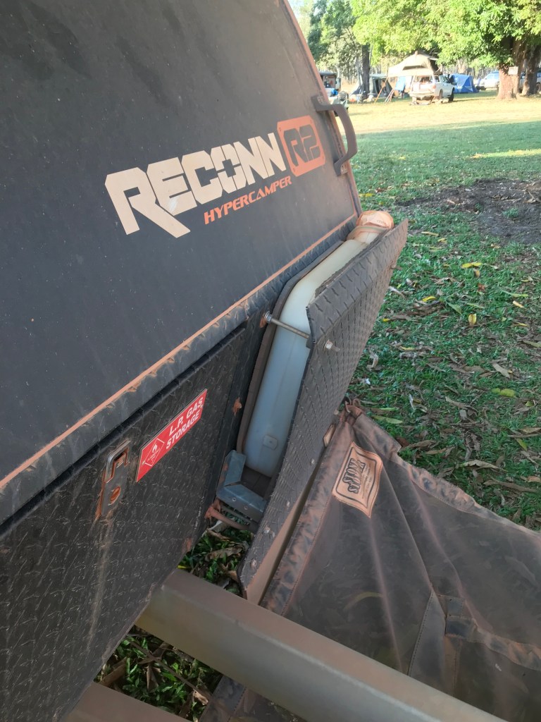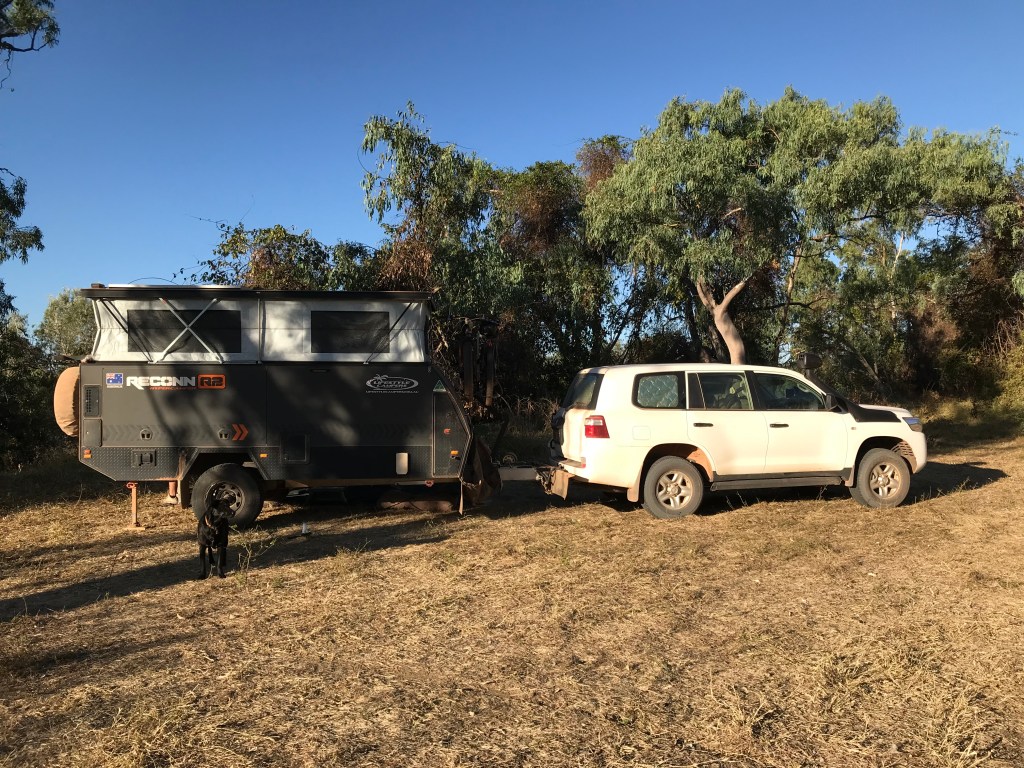 He moves his old battered Landcruiser and camper trailer out of my way and I filled up. Towing the Reconn2 Camper we have a definite range of 800kms, possibly up to an extra 100kms in reserve if we drive economically and the conditions are conducive. The road we are taking to Normanton is pretty much a Station track and very isolated, we will need to drive very conservatively and with great care, it will take us 2 days to cover the 400kms, there is also a very large river crossing towards the end of the drive. The Mitchell River, it takes 2 minutes to drive through the water crossing. Just a bit nervous about that because back tracking isnāt a favourable option !