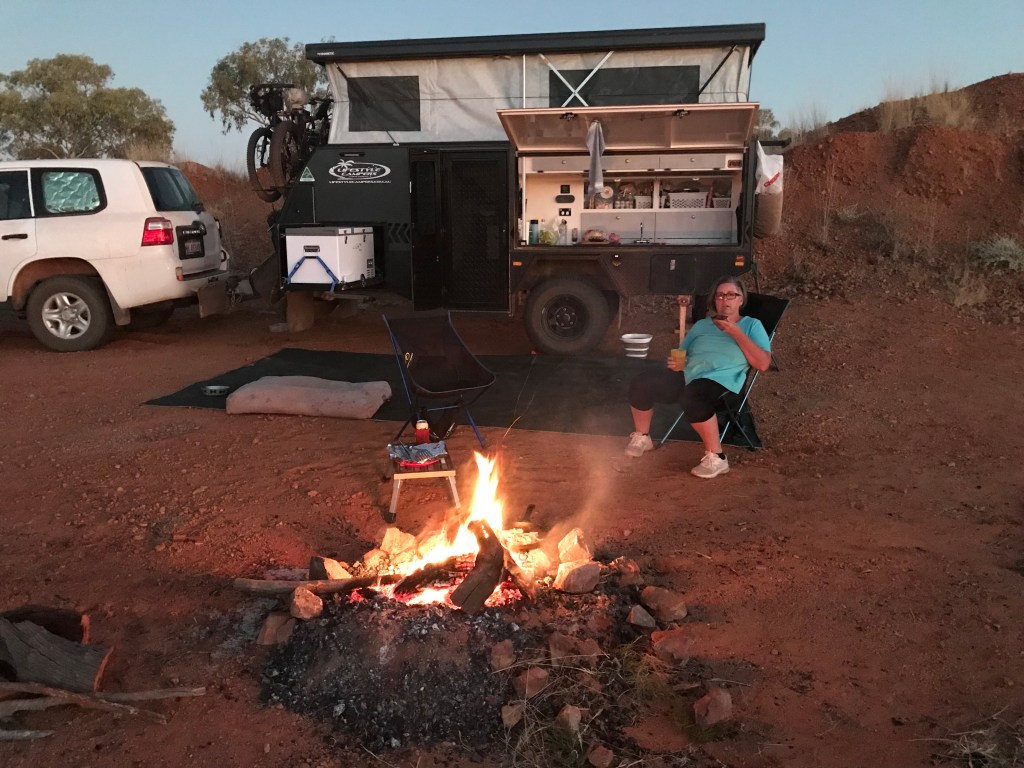 Tony, Anne from Yorke Peninsula, South Australia. Paul and Claire from Mackay Queensland (travelling in a Reconn4 similar to ours but bigger). After scoping out the area we finally park about 30 metres away from the others. Later we sit with them and talk about travels over a couple of beers. Whoa big day !