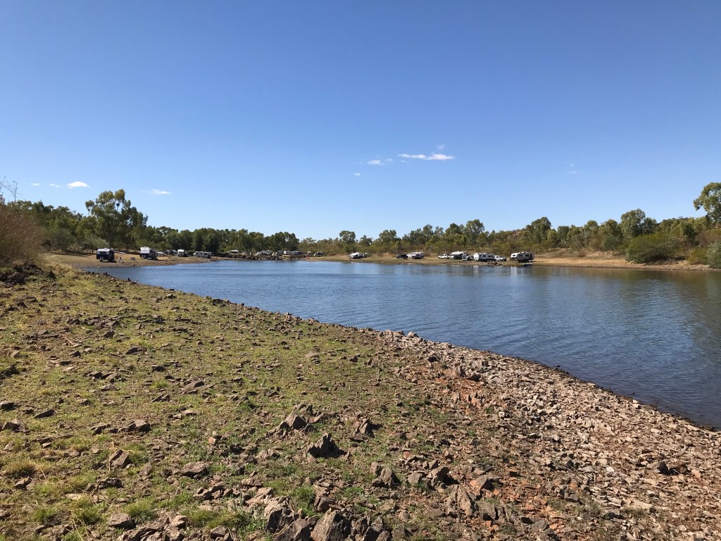 We said our goodbyes and headed for Cloncurry. Fuel, food, lunch was all we had planned for Cloncurry, it’s similar in size and layout to Merredin in WA. Next stop was Corella Dam, Clem Walton Park, about 50kms west of Cloncurry, just off the Barkley Highway. Once through the shut gate we were surprised at how many other campers were parked up here.