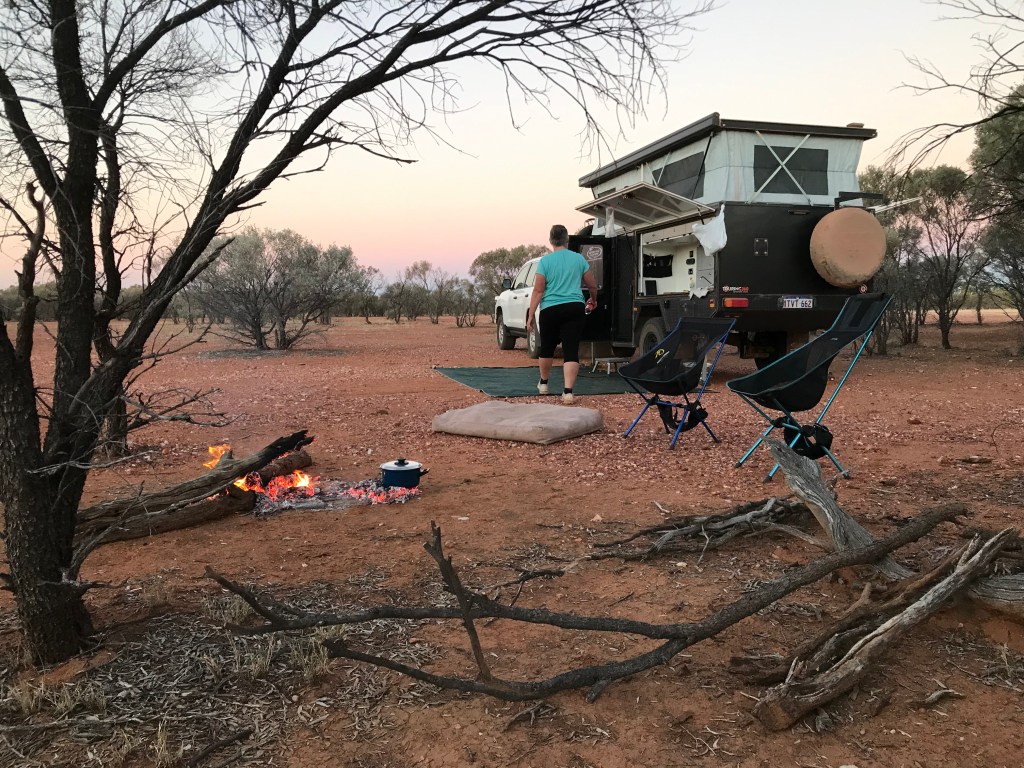 It’s very nice and Rodgie wants to stay for 2 nights. After some gnarly track around to the western side where most caravans don’t dare go we found a suitable spot to park up. From there we check out other possibilities camping spots on foot so we don’t get our rig in a snookered position. Two other good location were already occupied by intrepid travellers so we walked back to our car and camper to set up and be satisfied with our location. I did notice the right side tyre on the camper was down a bit and inflated it from 30psi back up to 45psi, we may have a slow air leak.