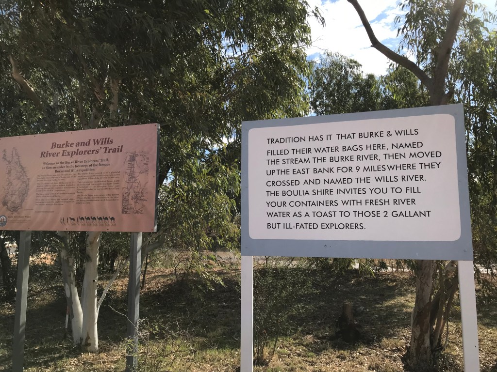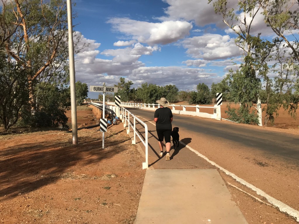 These are just some of the concerns that haunt our tour. Today was easy enough, Jenny did all the driving today a whole 150kms . It was once again single lane bitumen, very barren landscape out here, we also had a strong headwind. Once in Boulia we fuelled up, then booked into the Caravan Park on the eastern side of the Bourke River.