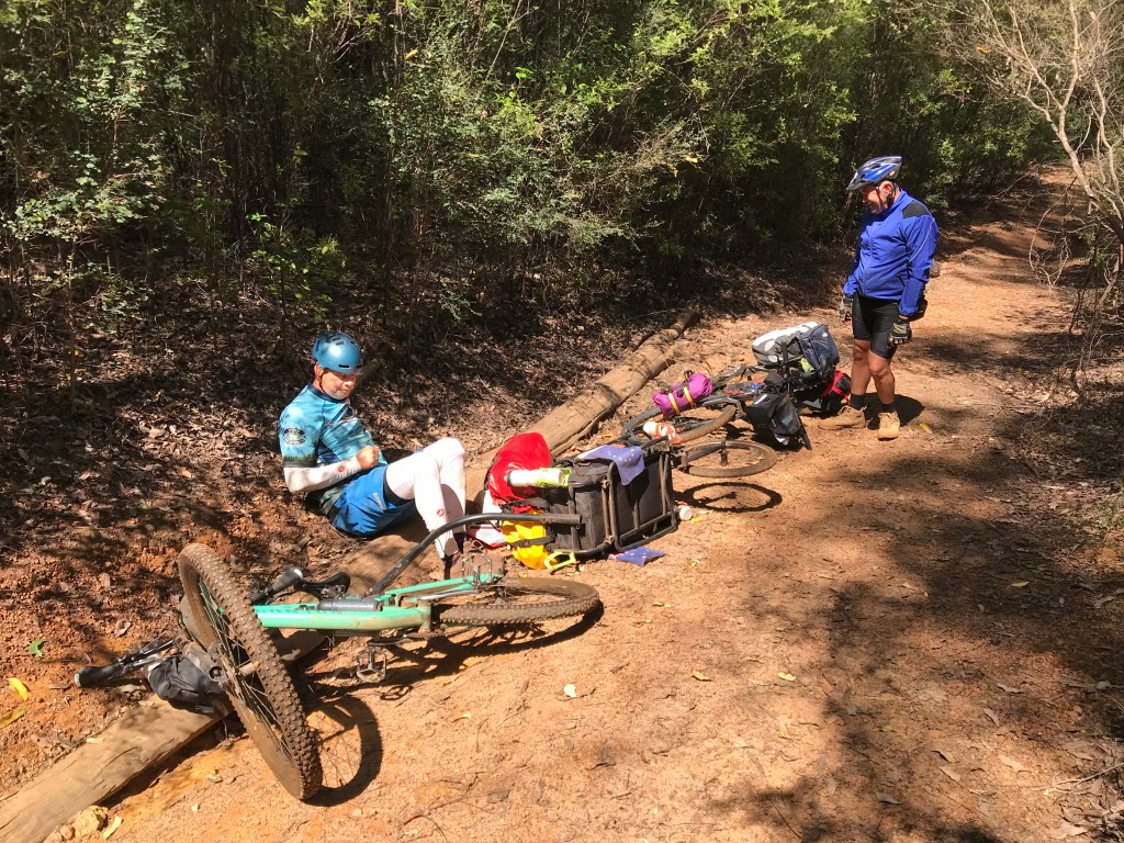 Carsten’s worse crash on the whole 3 month tour, about 20kms north of Yarri Hut, some sore ribs, bruises and scrapes. Otherwise ok.