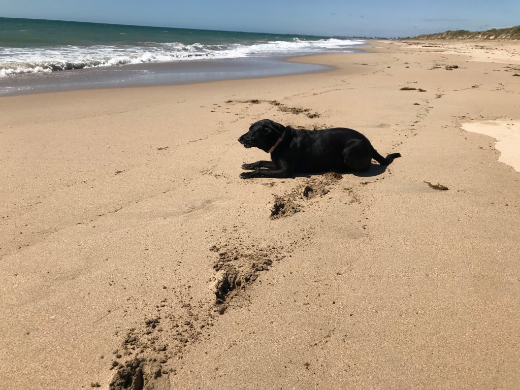 Rodgie dog at Silver Sands Beach, Mandurah.