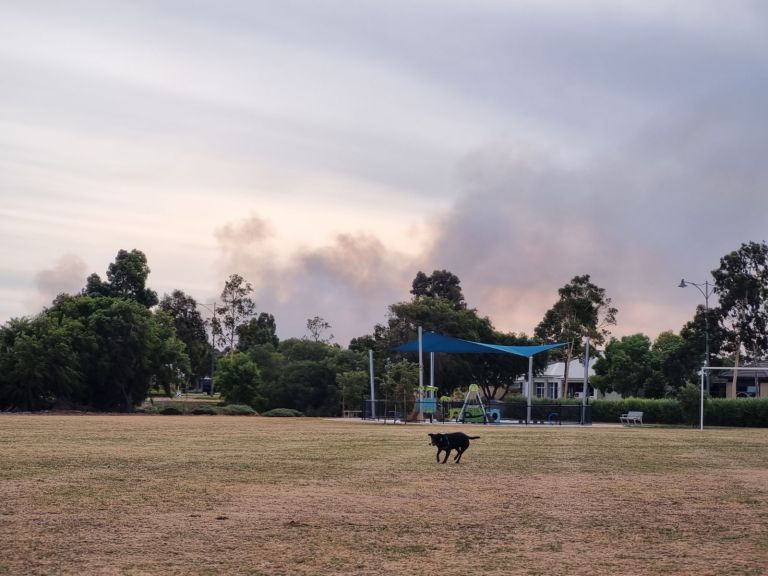 It’s bush fire season, this one was about 4kms south of us in Eaton. This is the park we take Rodgie to on most afternoons to chase her ball.